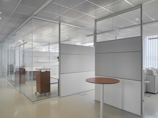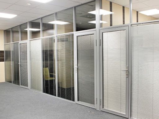 Изготавливаются перегородки из алюминия или металлопластика, что является основой конструкции. Стены перегородки могут быть выполнены из сэндвич-панелей, затемненных или тонированных стекол. Дополнительно имеется возможность установки распашных или раздвижных дверей.